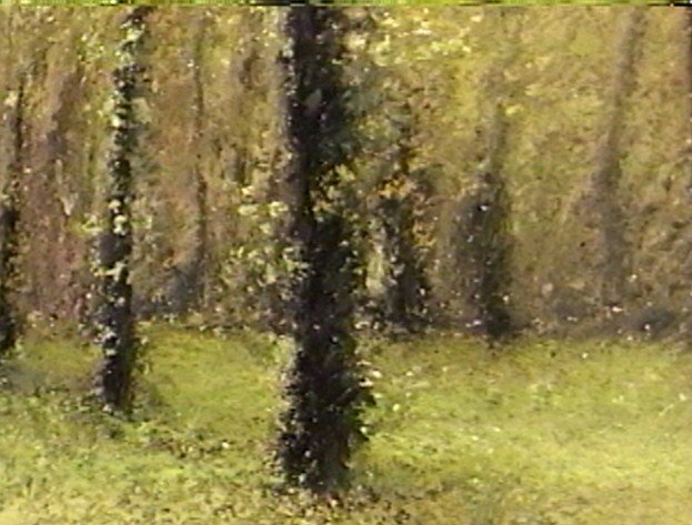 "April Landscape" (1997, #009) is a 6 1/4 x 6 1/4 pastel landscape, in a private collection. Painting detail shown below.